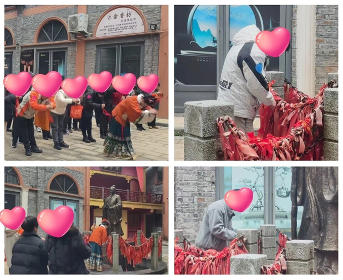 拜畢,紅繩在手,系于月老座前——